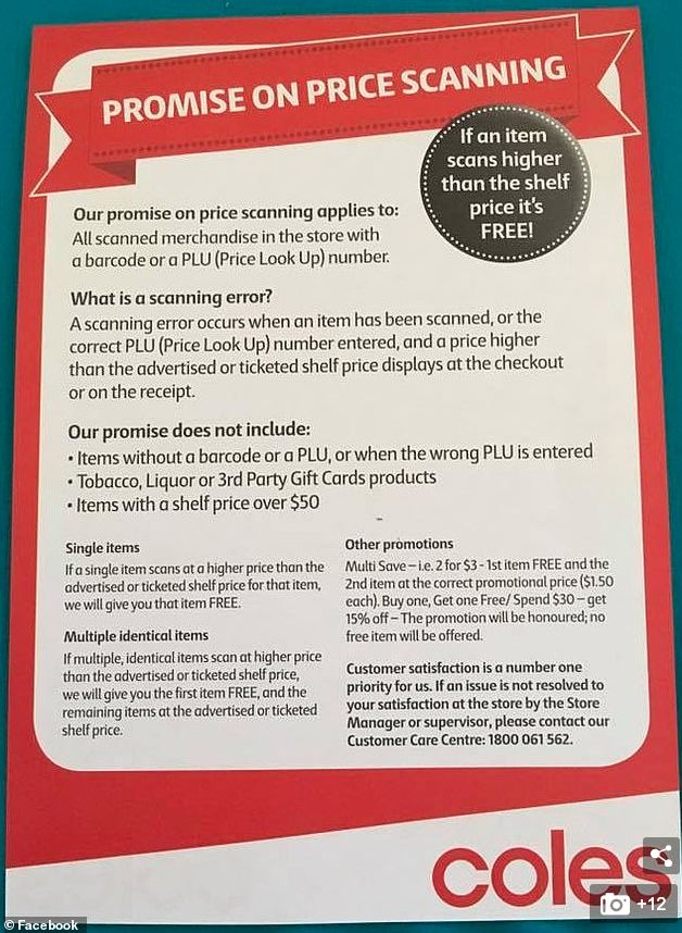 根据Coles的价格扫描承诺,如果扫描的价格比货架贴的价格高,这件商品免费!但是如果商品在货架的标价超过50刀不适用哦!