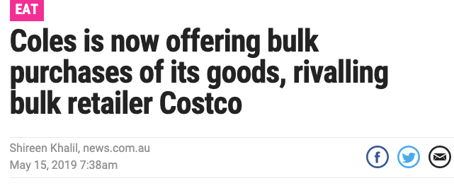 而最近coles要挑战Costco了!他们也像Costco那样开始出售家庭装大容量的日用品和杂货!