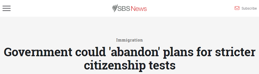 Courier-Mail的报道称政府不会再继续推动提高入籍要求的相关改革。