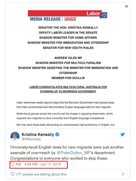 工党新上任的影子移民部长Kristina Keneally在昨天对此发来了“贺电”,称这是澳洲多元文化的胜利,而之前联盟党政府想要推动的改革政策是歧视性的。