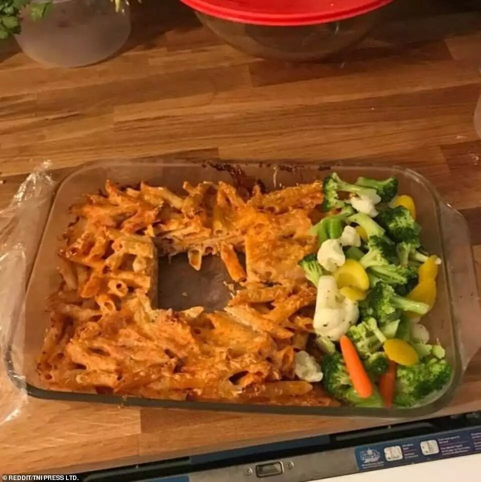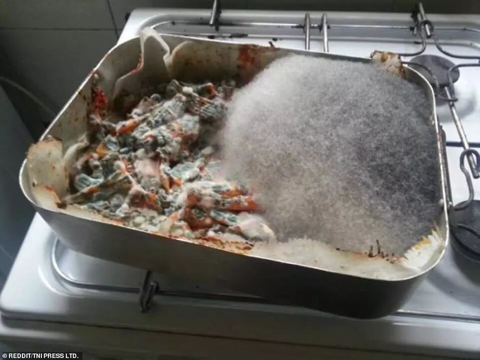 不知道这碗意大利面放了几天,已经长满了霉菌和长长的毛!