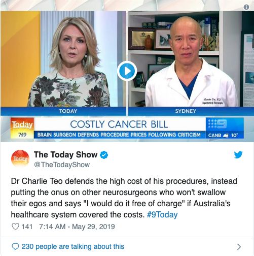 辗转之下,Amelia联系到了澳洲最有名的脑外科医生之一——Charlie Teo(张正贤)!