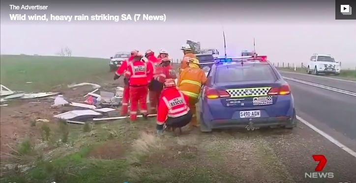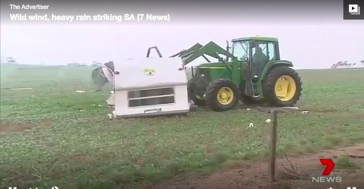 未来几天,天气将变得阴冷。昨日,由于冷锋过境,伴随着席卷全州的强风和大雨,这恶劣天气使得位于Strathalbyn附近的一辆露营拖车整个成了碎片!