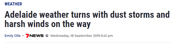 警告:本周四,南澳州将迎来一场恶劣的天气,沙尘暴和强风将肆虐该州。