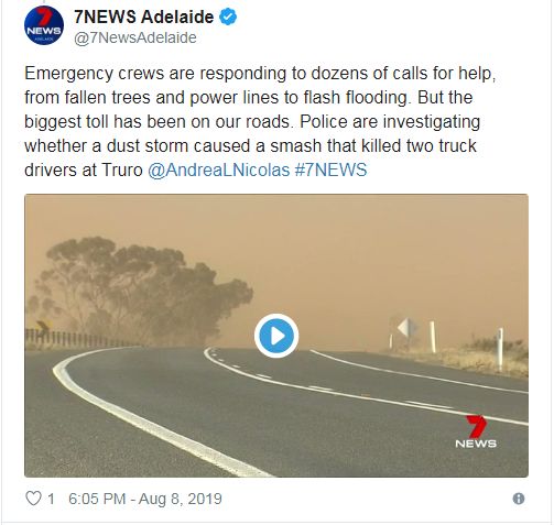 其实,不久前,南澳已出现过大规模的沙尘暴等极端天气,并且导致道路混乱的状况。