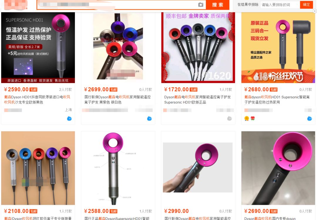 假冒戴森吹风机