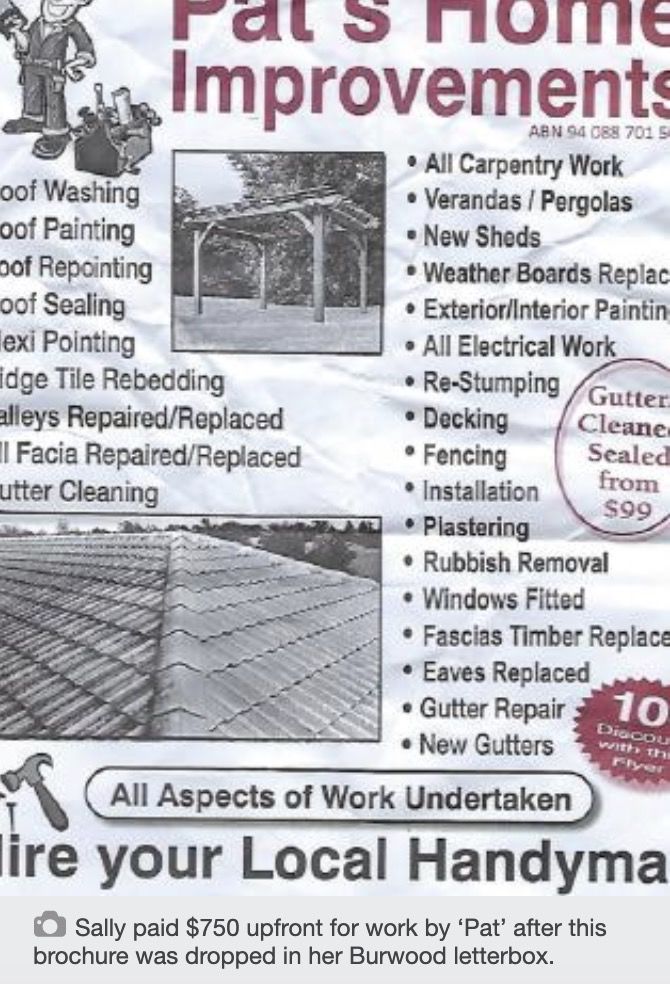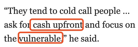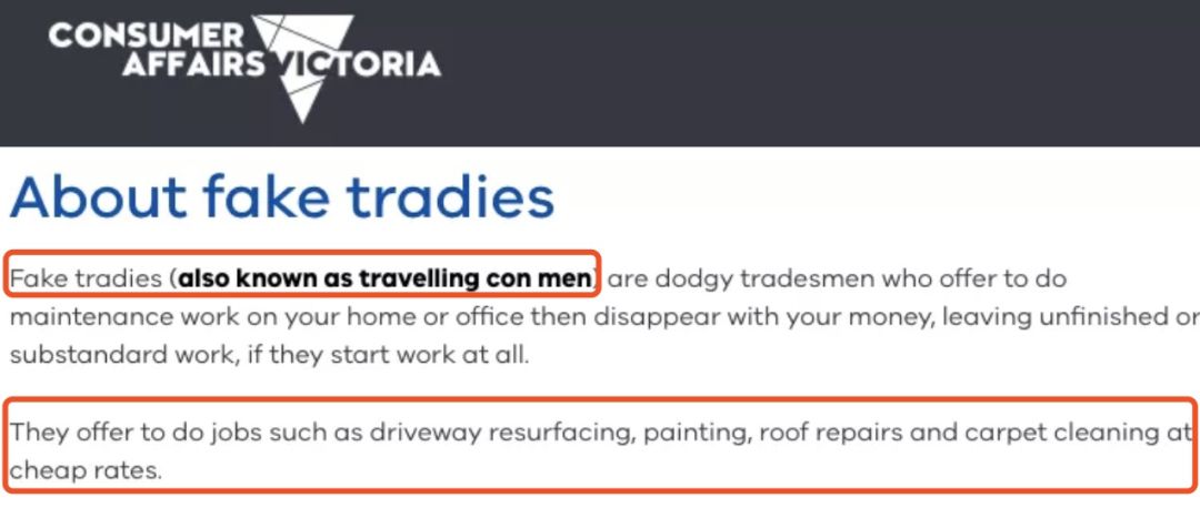 特别是在恶劣天气过后,像是洪水、暴雨等等,受灾的人们亟需维修、清理之时,Travelling con men出现的频率格外之高。