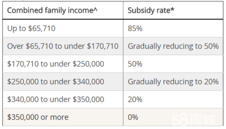 年收入350000澳元以上的家庭:不会获得任何补贴。
