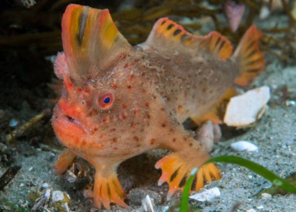 在塔斯马尼亚霍巴特附近海域生活着一群特殊的海洋生物,“手鱼”。它是世界上最稀有的海洋生物之一,近期,塔州发现红色手鱼,数量不到100条。