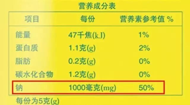 光这5克鸡精中,就含有1000 毫克的钠,大概是