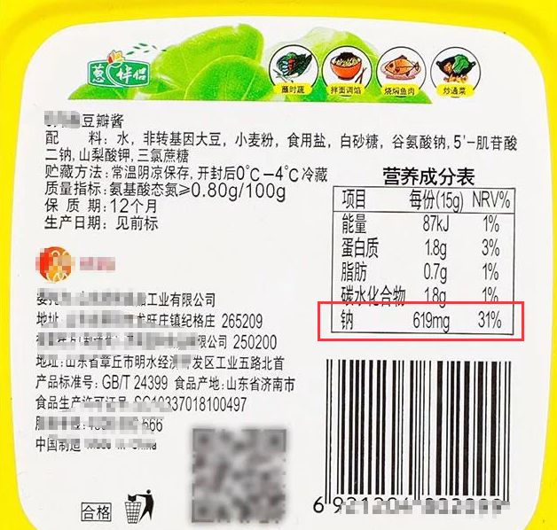 某品牌的豆瓣酱,每15克,相当于一勺的量,