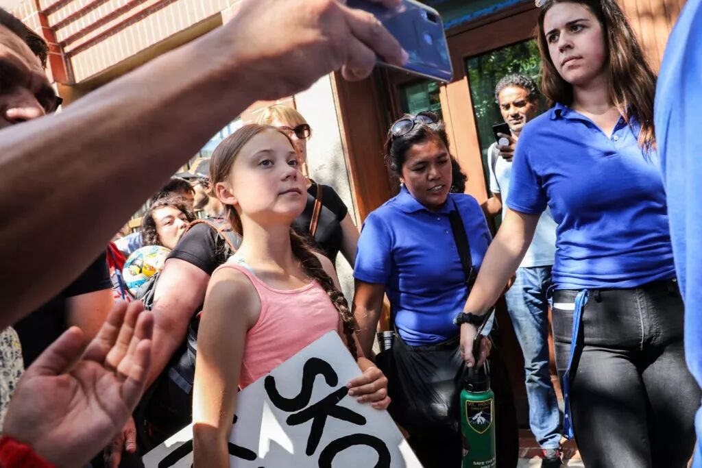 Thunberg的到来在美国也受到了众多“志同道合”的环保人士的夹道欢迎,她们也很快在美国本土开展运动。