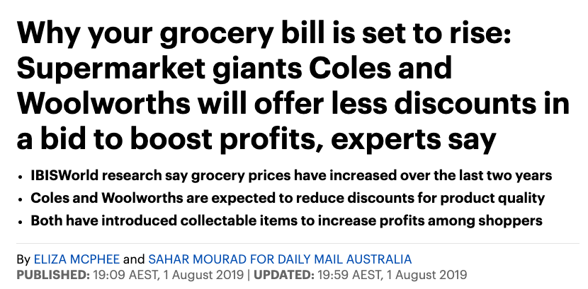 对于涨价,coles和woolworths的官方说法是:我们将更加关注品质,而不是一味打折!