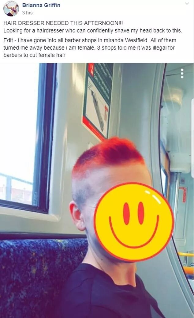 澳媒报道,这名女子名叫Brianna,近日正在社交平台上寻找一位新的理发师,并表示她之前找过很多理发店,但是这些理发店都拒绝为她剪短发。