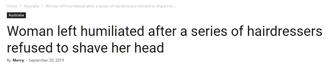 悉尼的一名女子想剪短发却接连遭到多个发型师拒绝,有些理发师的理由居然是“这个发型属于违法行为”。