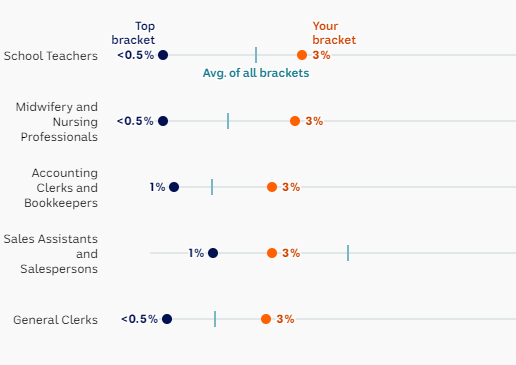 那么与你同属这个收入水平的人,大多从事什么工作呢?假设每周1000澳元这个level,前五的工作是:
