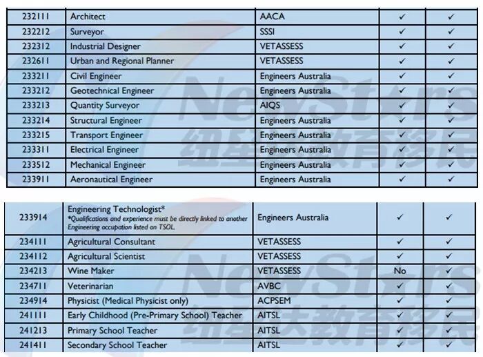 不过新州偏远地区“中意”的职业相差无几,如果申请人是如下专业并满足要求,可以联系NewStars评估: