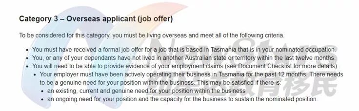 申请这一通道的申请人必须为海外申请人,并且职业在塔州TSOL上,英语水平相当于雅思4个7,同时在塔州找5-8个最符合申请人提名职业的工作机会(招工广告)。