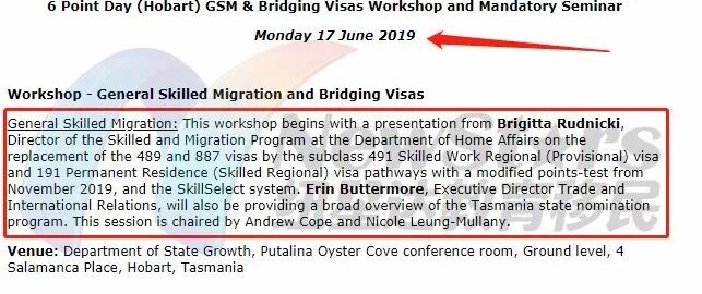 6月17号(周一)在霍巴特将有一场偏远地区新政研讨会!移民局技术移民主管主讲偏远地区新签证,塔州州官分享塔州州担最新消息和数据!