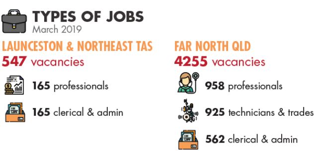 工作机会增加最快的Launceston and Northeast Tasmania:在2019年3月时,有547个岗位空缺等待填补,165个是专业类工作,165个行政类或办公室职员工作。