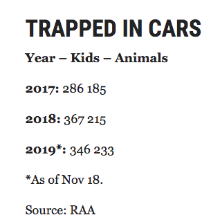 RAA向《广告人报》(The Advertiser)提供的数据显示,今年到目前为止,已有346名儿童和233只动物从被锁的汽车中获救。