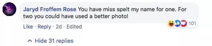 “首先,你们把我名字拼错了。然后,你们就不能给我换张好看点的照片吗?!”