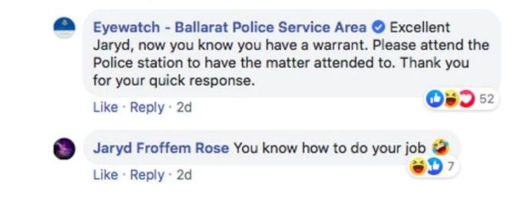 “太棒了Jaryd ,现在你知道自己被捕了!请赶紧去警局报道,顺便谢谢你这么快就回复我哦!”