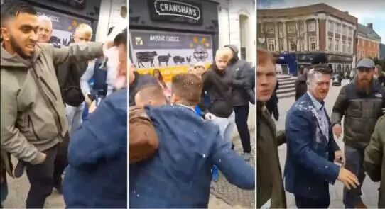 这件事发生在当地时间5月20日,脱欧党领袖奈杰尔·法拉奇去卡斯尔市中心参加竞选活动,谁知期间惨遭路人泼奶昔。