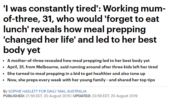 曾经,澳洲墨尔本的一名职业母亲经常感到疲惫,且昏昏欲睡,但自从她开始备餐之后,她的生活发生了巨大的改变,她的身材也完全不同了。