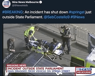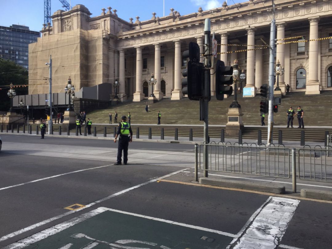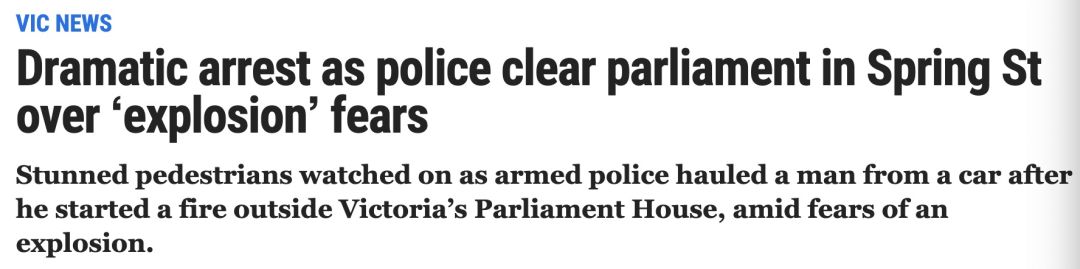 刚刚!墨尔本CBD议会门前有人企图自焚,试图引爆车辆!大量警察团团包围议会!大家注意安全!