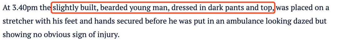 据报道,肇事男子是一名身材瘦小,留着胡子的年轻人,事发时他身穿黑色的裤子和上衣。