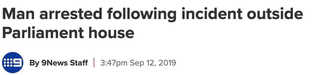 一男子开车来到议会大楼,试图自焚被警方即刻逮捕
