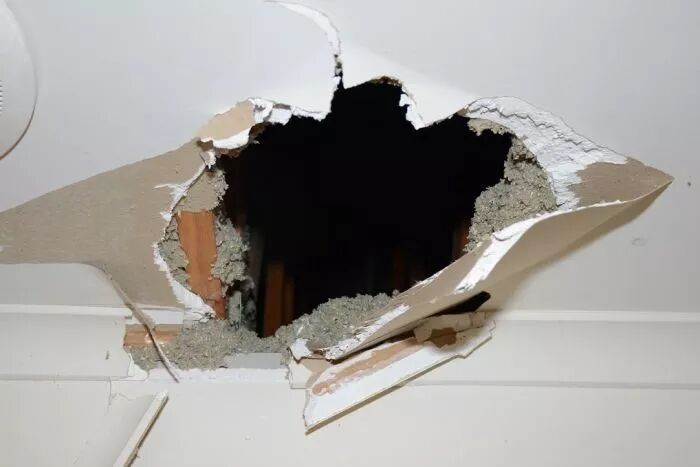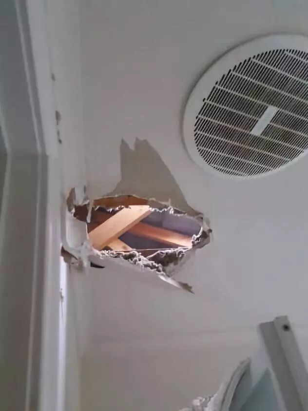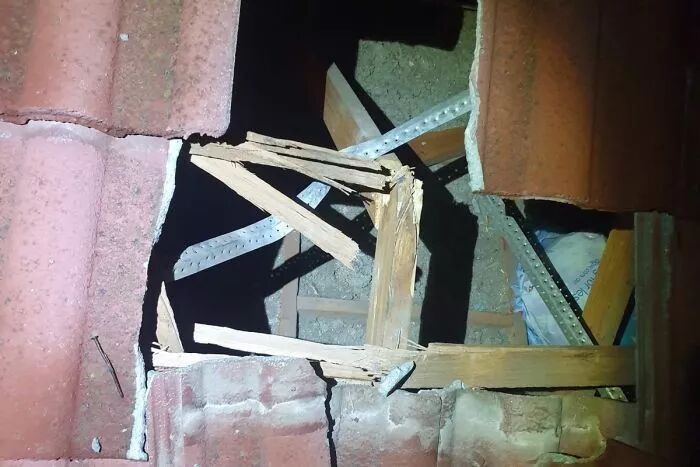 这个不明物体不仅生生砸穿了Kelvin家的屋顶,