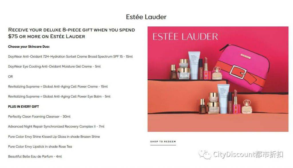 【3】雅诗兰黛一次买满75刀,送8件套礼包(部分内容可选)