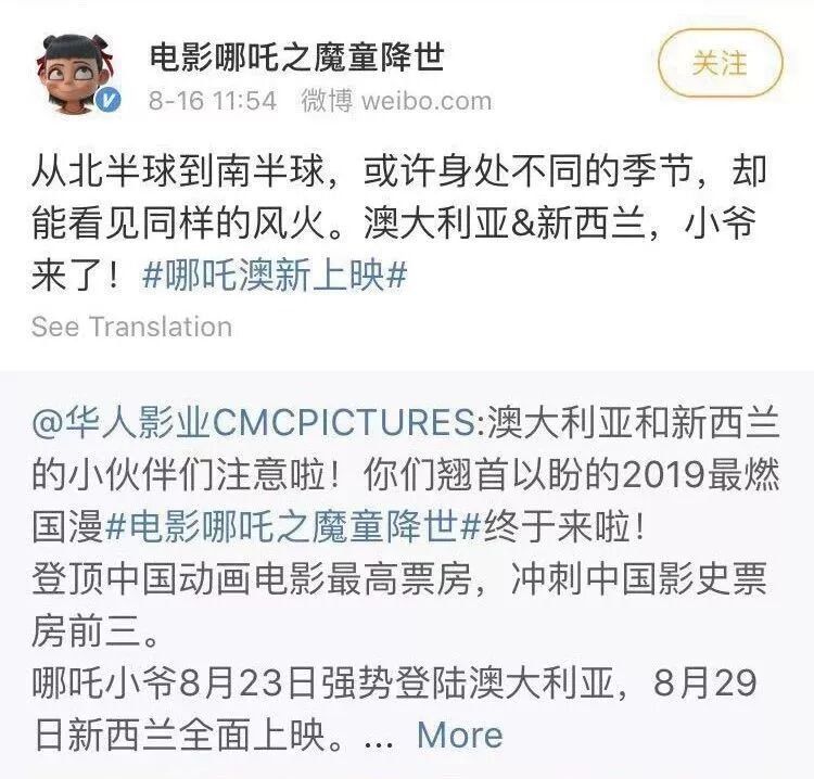 42亿票房《哪吒》将在澳洲上映,英译台词梗操碎心,网友支招:fast fast biu biu……