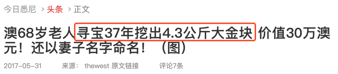 最终发现4.3千克大金块的68岁老人!