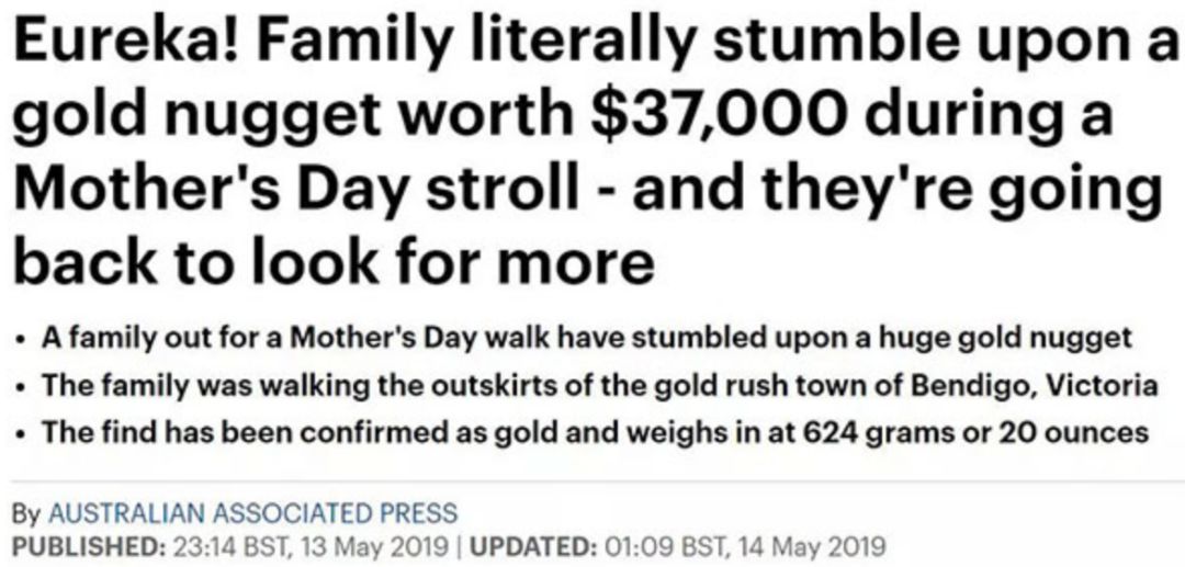 除此之外,还有很多人在今年也发现过价值不菲的金块!
