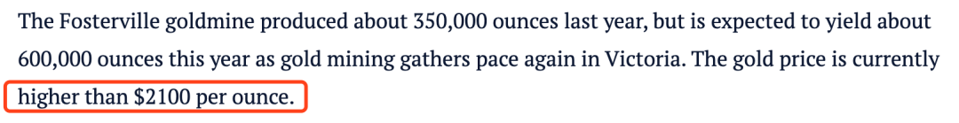 金子目前的价格约为每盎司2100澳元!