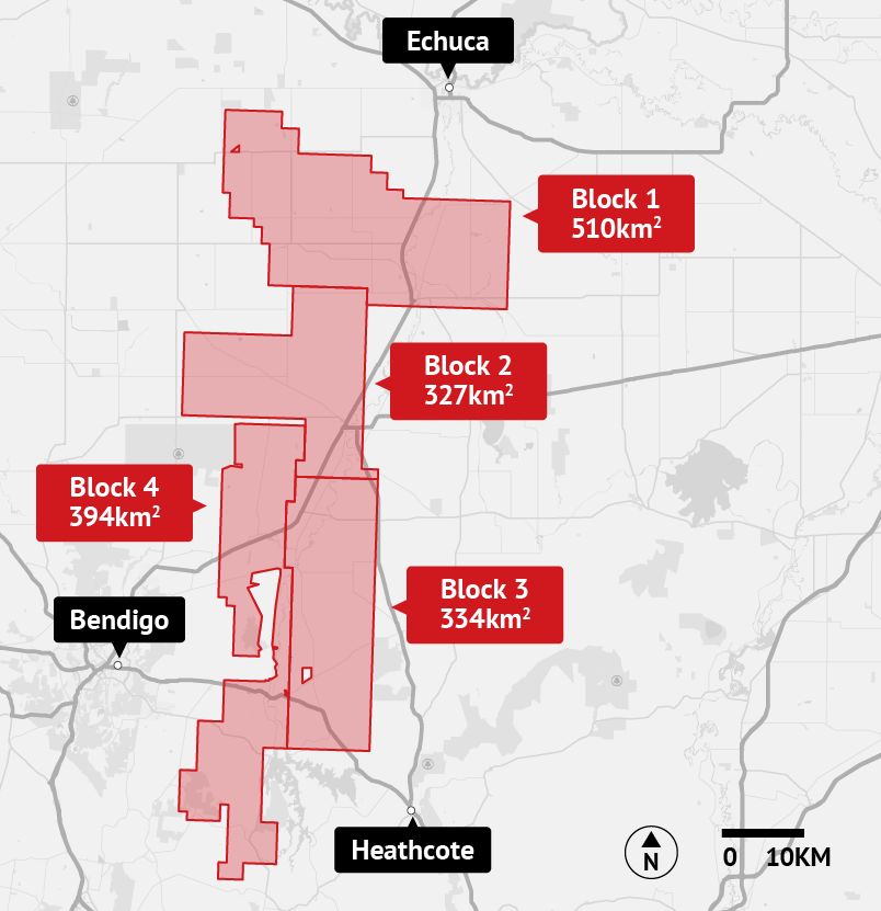 新的勘探区就在维州Bendigo小镇的东部和东北部