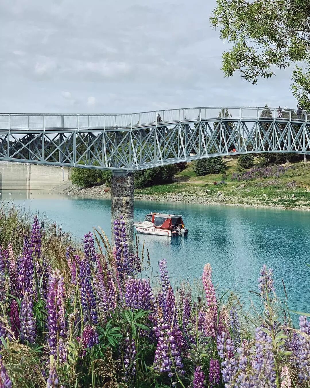 沿8号路继续前进,快到Omarama的时候,有一坐小桥。桥下有大片的鲁冰花。这里也值得一看