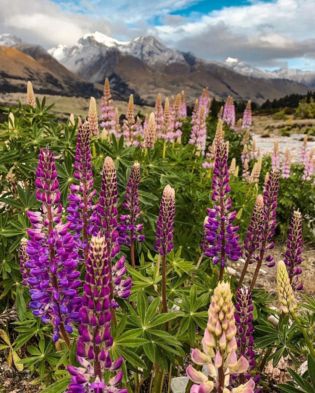 从瓦纳卡出发,沿着8号公路向Omarama方向行驶半个小时,将经过Ahuriri河,这里也有大片大片的鲁冰花可以看。