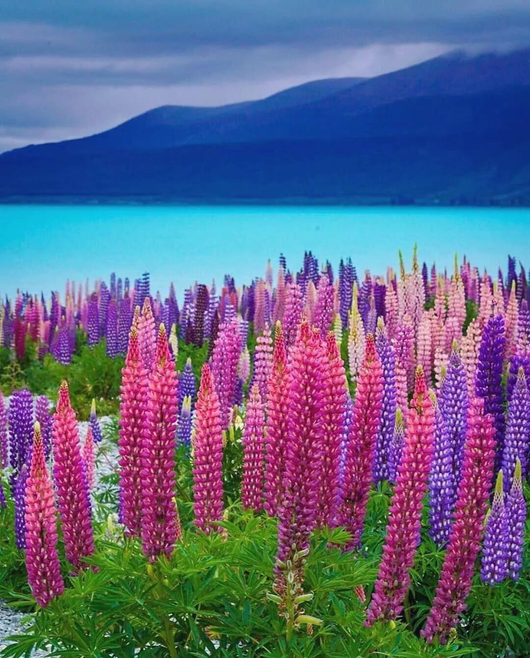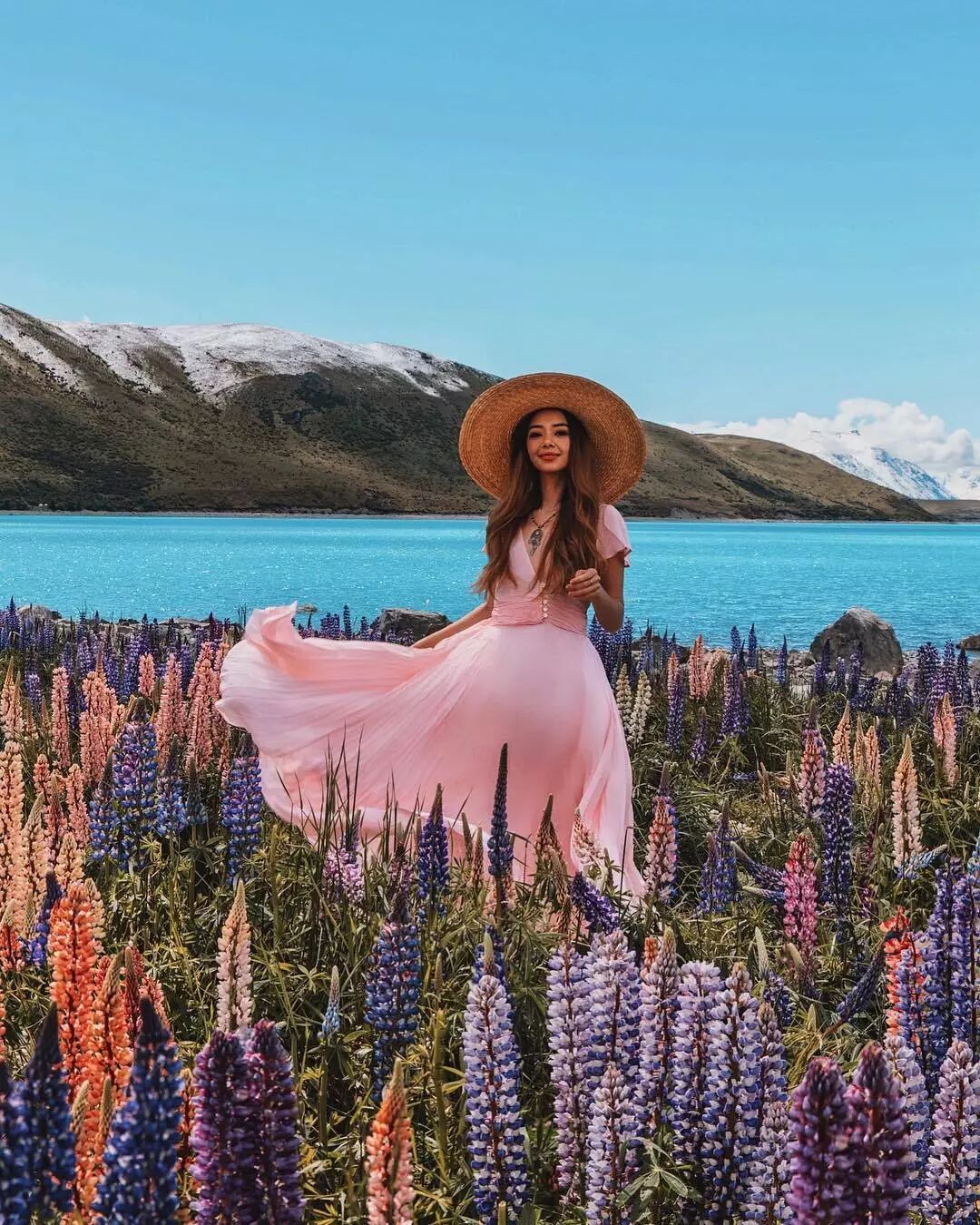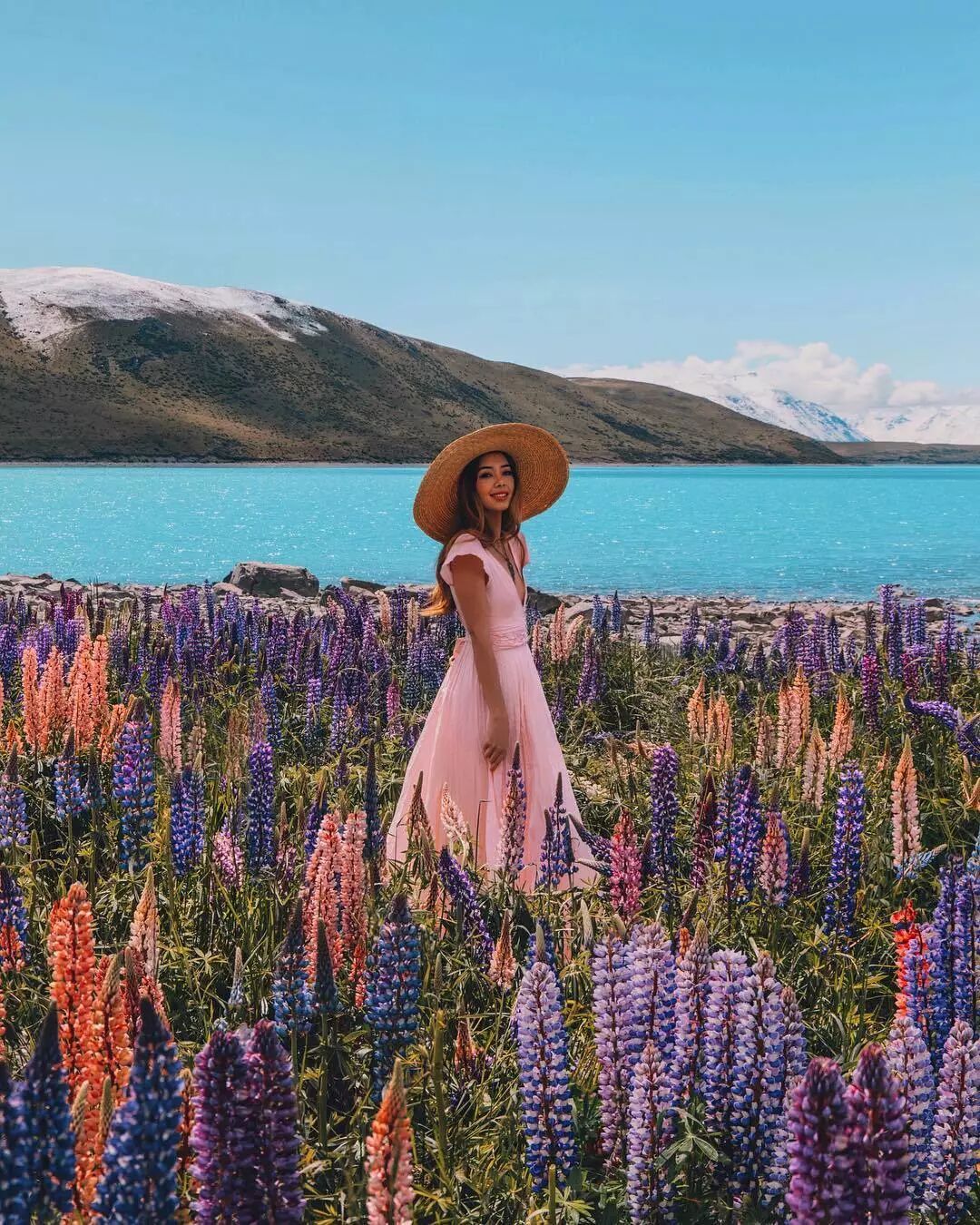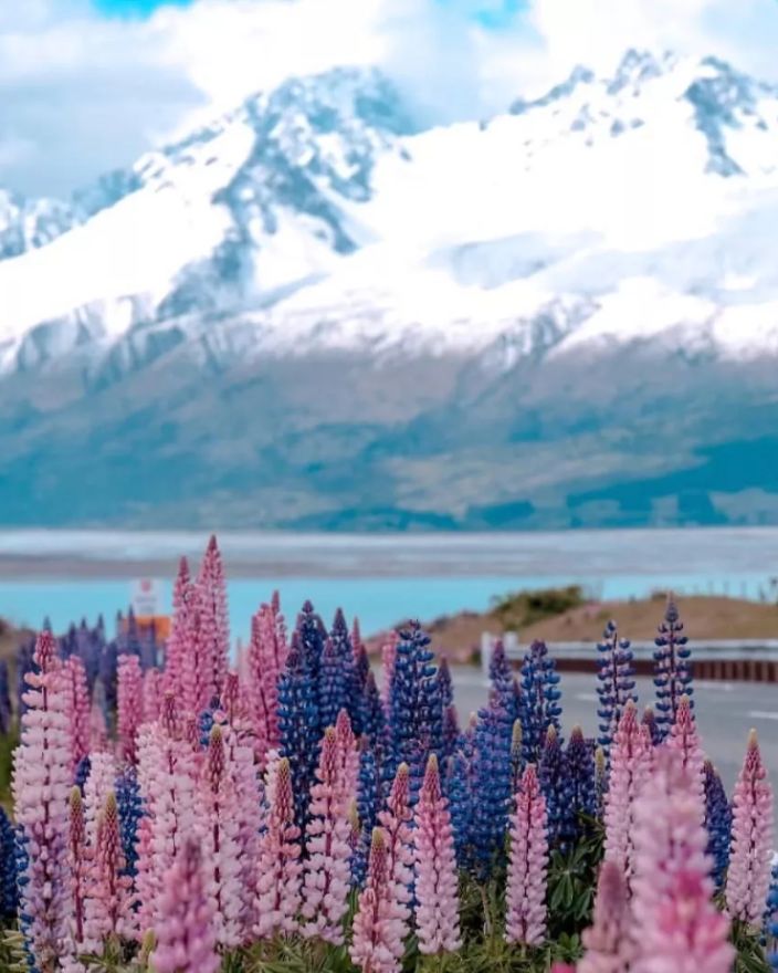 有新西兰最高峰库克山作为背景,蓝得近乎不真实的普卡基湖与鲁冰花,美不胜收。