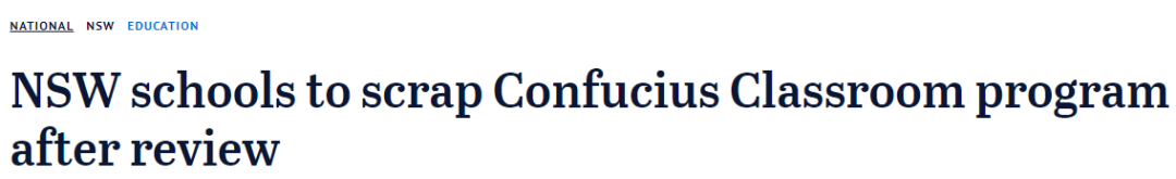 该部门秘书Mark Scott称:“在对新州公立学校中外国政府或机构支持的语言教育项目进行审查后,新州教育厅宣布结束13所学校的孔子课堂计划”,“审查发现,孔子学院与新州教育厅的这个项目安排是唯一的,而该项目应当更适合由高等教育机构提供,该部门已接受并开始实施所有审查建议,孔子学院的学生占新州公立学校中文学生的15%”。