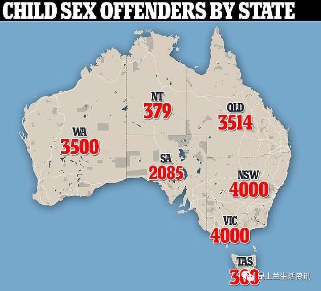一起看看这张地图,整个昆州记录在案的恋童癖共有3500多名!新州和维州则有4000多名!目前的警察资源完全不能及时监控这些恶魔!何况这只是记录在案的人数,很可能就只是真实人数的冰山一角!