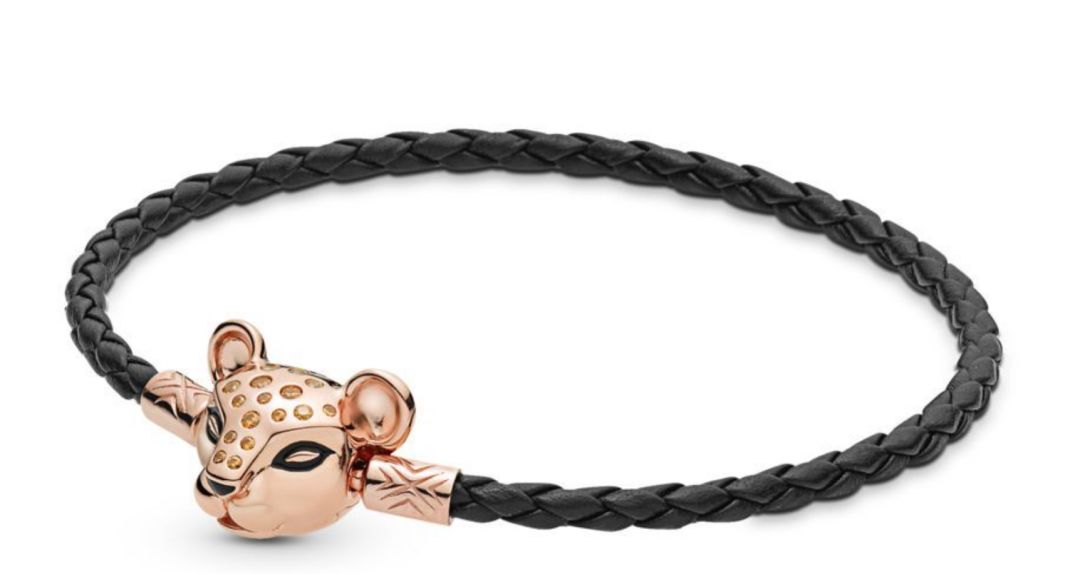 手链的编织纹理可为任何造型平添质感。胭脂粉Pandora Rose公主狮链扣艳丽迷人。狮头上闪耀的“斑点”和黑色装饰细节,让你显得更加迷人。