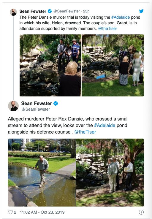 2017年,70岁的阿德男子Peter Rex Dansie被指控于4月16日在阿德莱德南部Veale Gardens一个池塘内淹死妻子。