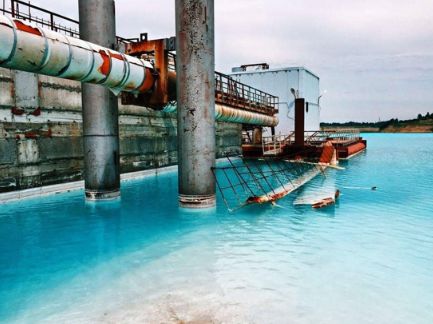 湖底下全是火电厂烧剩的煤炭灰烬,湖水变得特别蓝也是因为底下的化学物质。