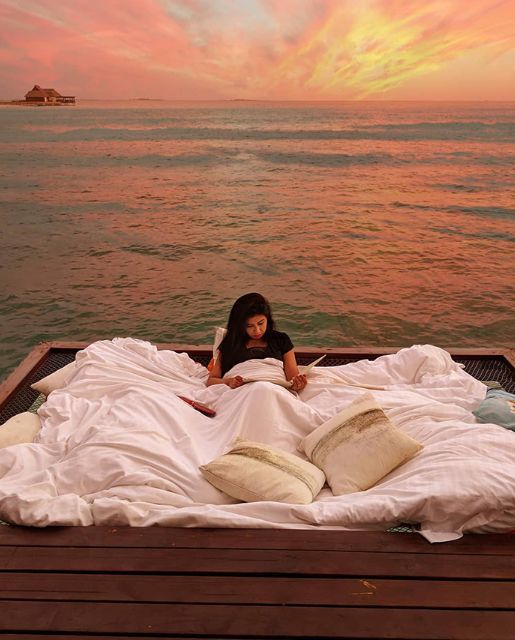 比如,有人到马尔代夫海边睡觉,一副岁月静好的样子。