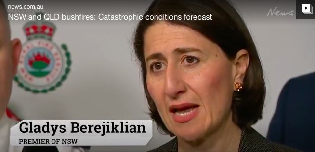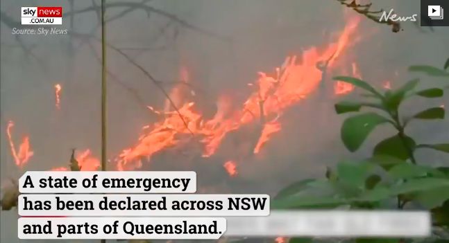 新南威尔士州有64处火灾,其中40处昨日早上仍未得到控制。昨日,新州州长Gladys Berejiklian宣布该州进入紧急状态,授予乡村消防局(RFC)委员Shane Fitzsimmons紧急权力,并发布全州范围的禁火令。