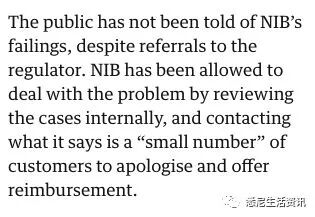尽管监管机构在接到了部分顾客提交的申诉后,并没有公开向公众告知NIB的违规操作!反而是允许NIB,在内部自行审查并处理案件,只向极少提出申诉的顾客道歉并提供报销。